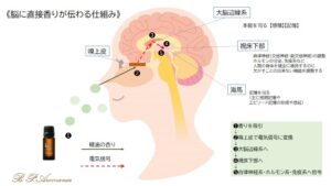 ここでは、五感のなかで唯一、嗅覚だけが直接伝わるという〔大脳辺縁系〕に注目しましょう。